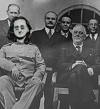 Geddy Lee and US President, FDR watch as dissidents are fed to the raptors, circa 1936