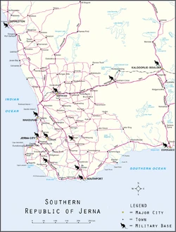 ![]() Detailed map of southern Republic of Jerna | |||||||||